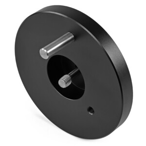 Adaptador para Omegon Columna Pro de para monturas y prismáticos. Dimensiones como se muestra en las ilustraciones. El adaptador también se adapta a columnas telescópicas de construcción idéntica si tienen un diámetro interior de 94 mm y tres huecos para tornillos M6 9 mm por debajo del borde superior.
