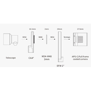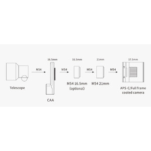 A pesar de su peso ligero, el ZWO CAA ofrece un rendimiento excepcional. Con un grosor de 16,5 mm, sustituye al adaptador ZWO estándar. Su peso es de sólo 465 gramos. El ZWO CAA está equipado con un motor paso a paso de gran eficacia para un funcionamiento suave y preciso, que puede ajustarse con precisión al ángulo objetivo. Su robusta estructura garantiza una rotación de 360° sin inclinación y asegura un funcionamiento estable y preciso. La ZWO CAA ajusta el ángulo de la cámara con una precisión de 0,02° en cada paso.