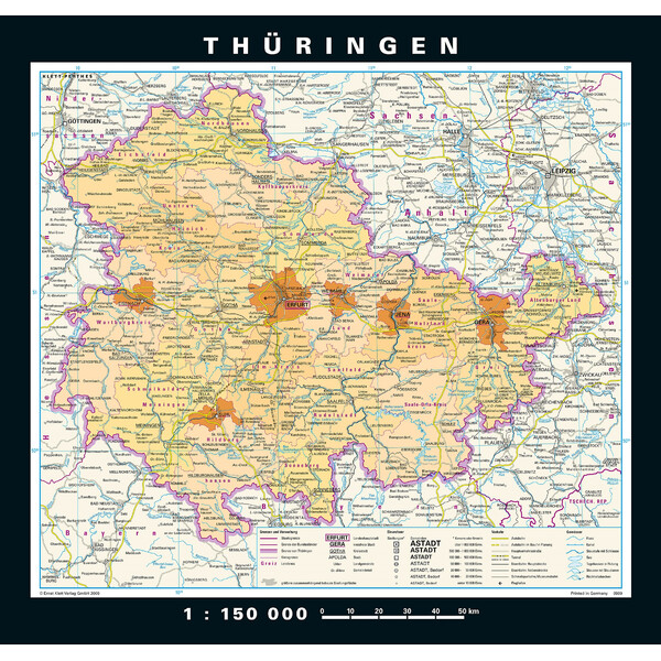 > PONS Mapa regional Turingia físico y político (148 x 150 cm)