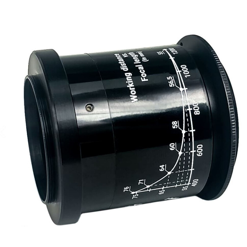 - Distancia de trabajo entre 55 y 76mm (y más) - la distancia de trabajo óptima para diferentes distancias focales se muestra en la carcasa