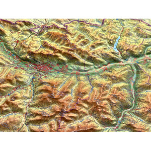 Este mapa en relieve muestra las ventajas paisajísticas de esta maravillosa región en el corazón de Europa.