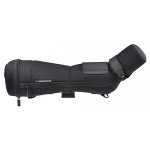 Los cierres de velcro evitan que las tapas abiertas molesten durante la observación. Esta bolsa combina las ventajas de una bolsa de transporte clásica con las de una sencilla funda de neopreno. Protege el catalejo de forma fiable contra golpes y es repelente al agua. Se entrega con correa de transporte.