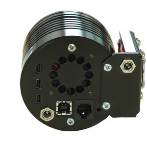 - El concentrador USB integrado en la cámara permite conectar hasta tres dispositivos periféricos (5 V CC con un máximo de 200 mA). Gracias a esta integración, se reduce el lío de cables en el telescopio. A través de la salida RJ11 se puede conectar un guider.