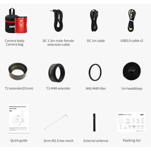 WLAN de doble banda: la antena externa de doble banda, compatible con frecuencias de 2,4 GHz y 5 GHz, permite un uso estable y fluido de la cámara en un radio de 20 metros. Con la aplicación ASIAir de ZWO, puede controlar la cámara y ver las imágenes fácilmente a través de su Smartphone.