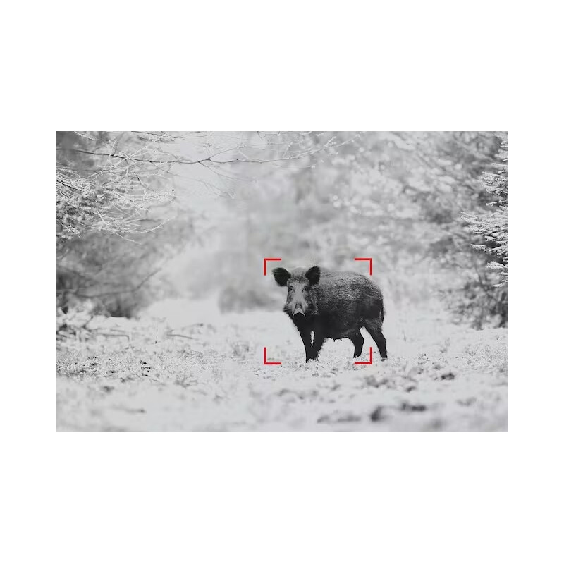 En la caza, la información más importante es saber dónde se encuentra un animal. A veces, los animales son difíciles de detectar porque solo son parcialmente visibles. El modo de detección resalta aún más las fuentes de calor y reduce al mismo tiempo el fondo frío. De este modo, puede detectar mejor que antes a los animales que se encuentran detrás de árboles y arbustos.