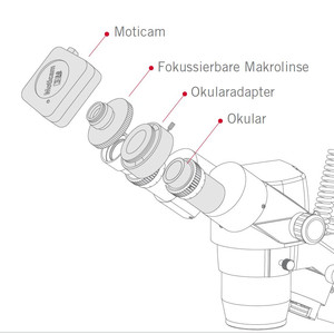 Simplemente fije la lente enfocable a la cámara y utilice el adaptador correcto para el ocular de su microscopio. Después coloque el conjunto Moticamlente- adaptador sobre el ocular y habrá convertido su microscopio convencional en un microscopio digital. Esta solución es también aplicable a microscopios de otras marcas.