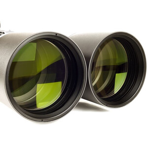 Estos binoculares permiten, por ejemplo, una observación muy detallada de la Luna, así como sumergirse en regiones nebulosas, cúmulos estelares y observar planetas lejanos. Gracias a las excelentes ópticas apocromáticas de cristal SD, los objetos se reproducen con gran nitidez y alto contraste. Esta clase de dispositivos se puede montar en trípodes fotográficos (muy recomendable) y está equipada con una empuñadura estable. Gracias al cambio de ocular, estos binoculares son mucho más flexibles que los modelos de aumento fijo. Toda la estructura de la carcasa es sólida y duradera.