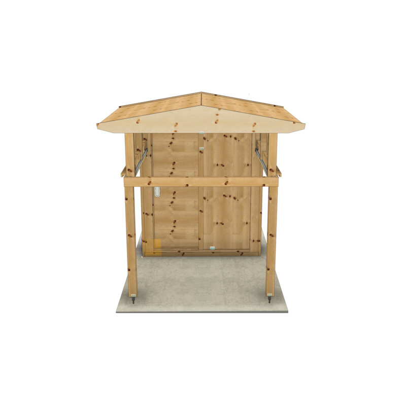- La cabina ofrece la máxima capacidad de almacenamiento y espacio para una mesa u otros muebles. El patio de la cabaña puede tener un diseño atractivo.
