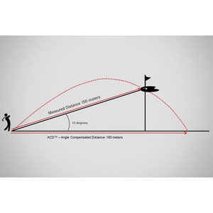 La ACD™ (Angle Compensated Distance) es el extra perfecto para su entrenamiento diario en el campo de prácticas y durante una ronda de golf. El Leica Pinmaster II Pro tiene en cuenta la inclinación del terreno y le proporciona una segunda distancia corregida. Pero la ACD™ puede hacer mucho más: al calcular la distancia corregida, el Leica Pinmaster II Pro no solo tiene en cuenta la pendiente del terreno, sino también el ángulo de impacto específico de la trayectoria de la bola de golf.