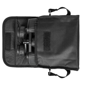 La carcasa está fabricada en aleación de aluminio con protección contra salpicaduras según IPX3. El ajuste de dioptrías permite adaptar los binoculares a la visión del usuario. Se pueden montar en un trípode mediante rosca fotográfica.