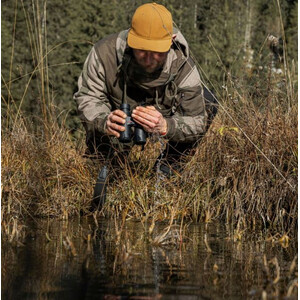 Los binoculares Minox X-TOUR 10x34 son unos binoculares versátiles y polivalentes con un aumento de 10x para usuarios que desean mayor profundidad de detalle y alcance sin renunciar a la compacidad. Con un diámetro de objetivo de 34 mm, ofrecen un buen equilibrio entre intensidad luminosa y peso, y son ideales para la caza en campo abierto, la montaña, la observación de aves y las excursiones outdoor. Las lentes ED y el revestimiento de alta calidad garantizan una imagen nítida y contrastada con una alta resolución en los bordes. La robusta carcasa de magnesio, el relleno de nitrógeno y la certificación IPX7 garantizan su fiabilidad bajo la lluvia, el frío y la humedad. Con un peso de hasta 500 g, los prismáticos son agradablemente ligeros y, por lo tanto, prácticos para usos prolongados.