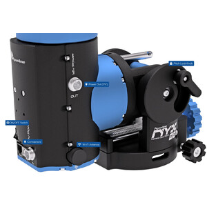 NYX es la diosa griega de la noche y Pegasus Astro ofrece ahora bajo este nombre otra potente montura con tecnología Harmonic Drive y una carga útil de hasta 14 kg, ¡sin necesidad de contrapesos! De ello se encarga la tecnología de transmisión Harmonic Drive/Strainwave. El accionamiento garantiza un funcionamiento sin holguras y con un par elevado. Una carcasa de aleación de aluminio totalmente mecanizada con CNC, anodizada en negro y azul, así como una selección de componentes de alta calidad (motores paso a paso, engranajes de onda) dentro de la montura garantizan un funcionamiento sin fallos durante muchos años.