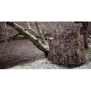 Consejo: Realce el camuflaje utilizando materiales naturales, por ejemplo, no construya la tienda directamente en la transición entre el bosque y el borde del campo, ¡sino deje que el patrón de camuflaje parezca aún más real añadiendo unos cuantos arbustos bajos o ramas en primer plano!