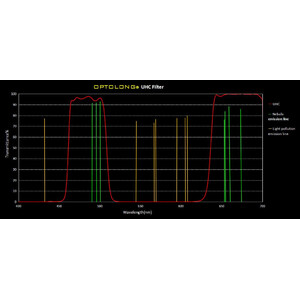 Esto se logra con una reducción parcial de la transmisión de las longitudes de onda correspondientes a la contaminación lumínica, particularmente de aquellas generadas por fuentes de luz artificial, incluidas las lámparas de vapor de mercurio, aunque también por los bloques de luz de las lámparas de vapor de sodio y por el indeseable efecto "skyglow". Además de las líneas de emisión de alta transparencia de las principales nebulosas a OIII (496 y 500 nm), H-Beta (486 nm), NII (654 y 658 nm), H-Alfa (656 nm) y SII (672 nm), este filtro también es apto para mejorar el contraste y el grado de detalle para fines tanto visuales como fotográficos desde zonas pobladas con fuerte contaminación lumínica.