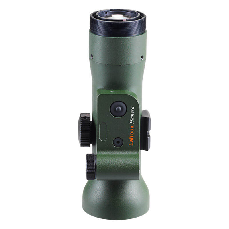 El diseño corto y compacto del dispositivo adicional de visión nocturna Lahoux Hemera ofrece un amplio campo de visión, lo que lo convierte en un compañero multifuncional para la caza en acechos, la caza a la espera y también para objetivos en movimiento. Manejo intuitivo y fácil de usar, robustez y la mejor calidad de imagen en combinación con tubos intensificadores de imagen Photonis que permiten el máximo rendimiento. Lahoux utiliza exclusivamente tubos intensificadores de imagen de Photonis™, Gen 2+ y la última tecnología de tubos ECHO y ECHO HF. De este modo, se satisface el máximo rendimiento incluso para los clientes más exigentes. El rápido auto-gating (ATG), la regulación de la luminosidad (EGAC) y los valores de rendimiento más altos son únicos en esta combinación.