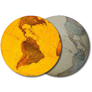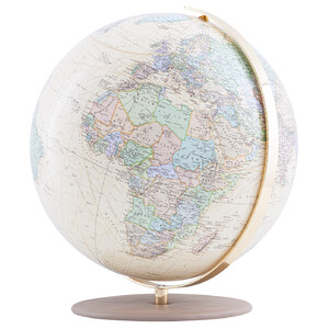 El globo terráqueo Royal muestra la situación política actual de nuestro planeta en colores cálidos y un estilo nostálgico. Con la iluminación, las fronteras políticas pasan a un segundo plano y se hace visible un relieve detallado e imperceptible al tacto, formado por alturas y profundidades.