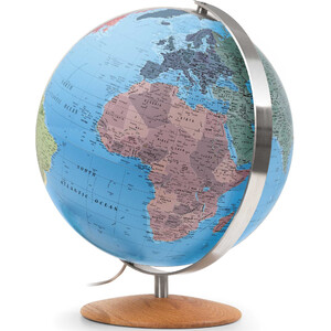 El globo luminoso laminado a mano CTN 37 02 combina la artesanía tradicional con un diseño contemporáneo para crear un globo terráqueo que informa e inspira. Su esfera de 37 cm ha sido cuidadosamente laminada a mano —los segmentos del mapa se han aplicado uno a uno y se han ajustado con precisión—, lo que hace que cada globo terráqueo sea una pieza única. Equipado con una elegante base de madera de roble y un meridiano de acero inoxidable cepillado, se integra con estilo en cualquier ambiente.