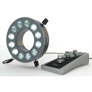 La luz anular LED de alta potencia RL12-S4, enormemente luminosa y de uso variable, ha sido desarrollada para múltiples aplicaciones en microscopios, producción y procesamiento industrial de imágenes. Los 12 LED de alta potencia de la luz anular, alojados en una carcasa metálica compacta, tienen una larga vida útil y se caracterizan por una gran intensidad luminosa.