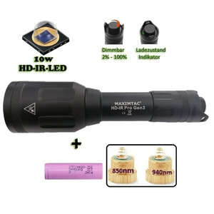 Maximtac HD-IR-Pro de 3ª generación con unidad LED de 850 nm y 940 nm: ¡una linterna de caza enfocable y regulable, diseñada especialmente para la caza nocturna!