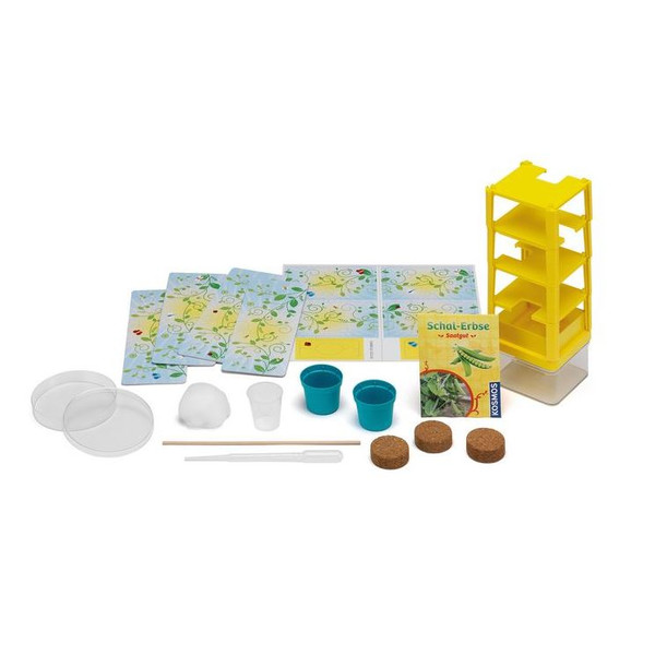 Inhalt: 3D-Pflanzenlabyrinth mit Wassertank, Erde-Reservoir und 4 Labyrinth-Teilen, Erbsen, 3 Erde-Pellets, Pipette, Watte, Petrischale, Messbecher, Holzstab, 2 Pflanzentöpfchen, Stanzbogen und eine farbig illustrierte Anleitung. Zusätzlich wird benötigt: Schüssel.