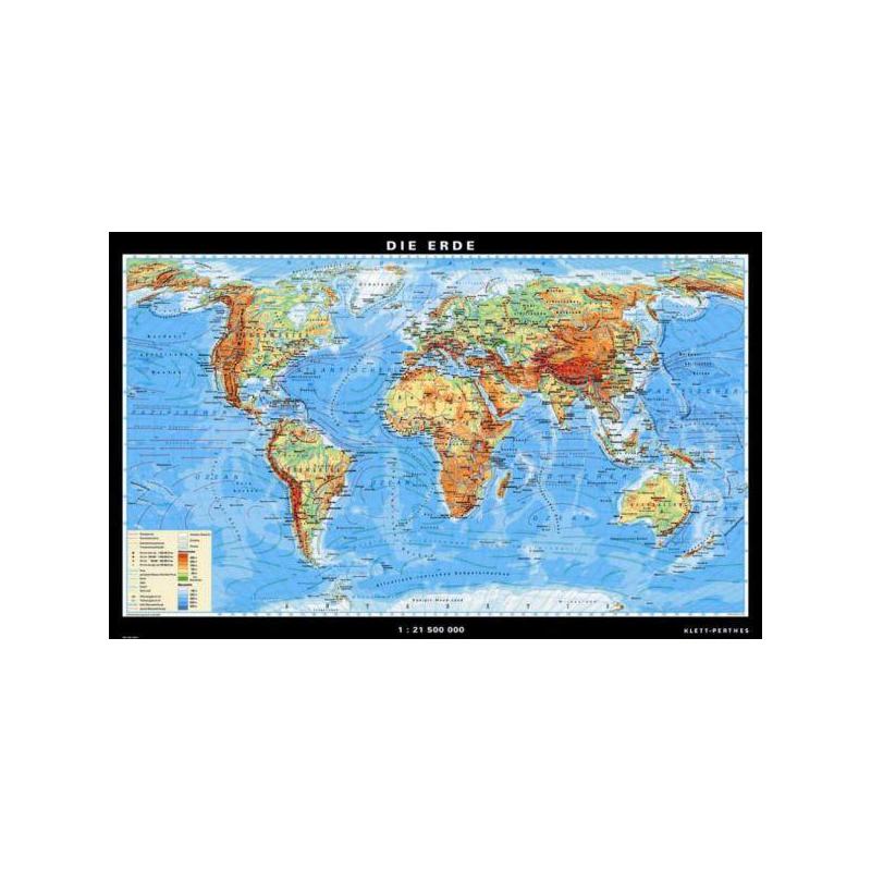 > Klett-Perthes Verlag Weltkarte Erde - physisch / stumm (P) 2-seitig