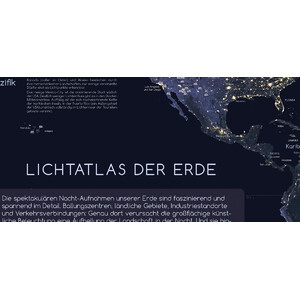 Además, se indican las ubicaciones de los 100 observatorios más importantes del mundo y se enumeran con datos. De ellos, los telescopios más grandes utilizados con fines científicos se encuentran en los lugares más oscuros de la Tierra, para poder investigar sin perturbaciones el cielo estrellado en su intensidad original, una vista que, lamentablemente, muchas personas han perdido en las zonas densamente pobladas de la civilización.