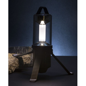 Esta moderna linterna LED será imprescindible en todas sus acampadas. Se acabaron los olores a petróleo o gas y las mechas quemadas. Esta linterna LED crea un ambiente romántico con su luz LED blanca cálida. La luminosidad máxima es de 200 lúmenes. Dispone de diferentes ajustes de luz. Para compensar las irregularidades del suelo, las patas de la linterna se pueden ajustar en diferentes posiciones. Para su transporte, se pueden plegar alrededor del cabezal de la lámpara. En el asa hay un mosquetón para colgar la linterna de los postes de la tienda de campaña o similares.