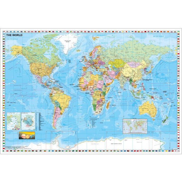 > Stiefel Mapamundi politisch mit Flaggenrand (137x89)