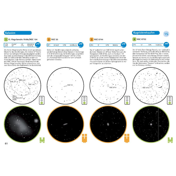 El cielo está lleno de objetos que parecen hechos para binoculares pequeños y grandes. En su segunda edición, Big Binoscout presenta 176 objetivos desconocidos y clásicos para prismáticos de mano y telescopios terrestres habituales. Mapas de localización ordenados por estaciones, mapas de campo visual, ilustraciones, datos de los objetos e indicaciones para observadores urbanos y rurales lo convierten en una herramienta práctica e intuitiva para sus propios descubrimientos en el cielo nocturno.