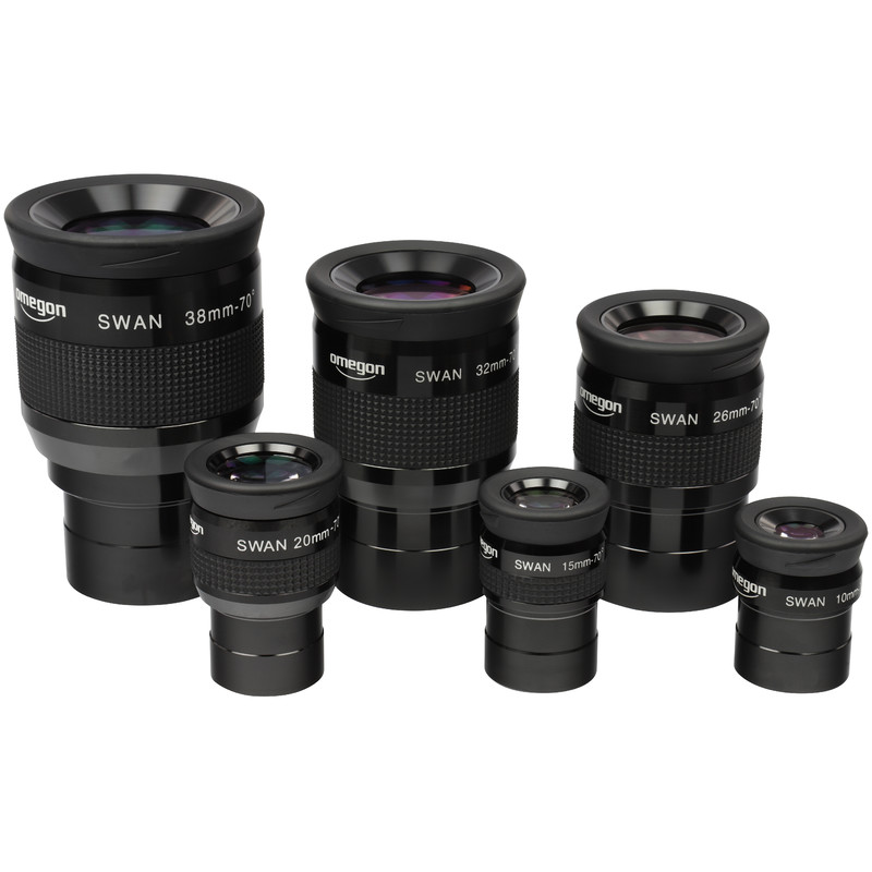 La serie OSA de Omegon consta de seis oculares: 38mm, 32mm, 26mm, 20mm, 15mm und 10mm. Los oculares de 38mm, 32mm y 26mm suministramos como versión de 2". Son herramientas ideales para la observación de objetos del espacio profundo y dan campos visuales aparentes gigantescas. Los oculares con distancias focales más cortas de 20mm, 15mm y 10 mm están dotados de un manguito de 1,25". Todos los oculares de esta serie son homofocales, quiere decir, cuando cambia los oculares no tiene que reenfocar.