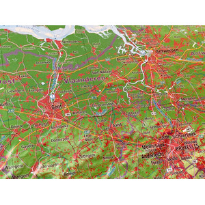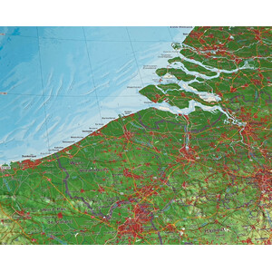 Las zonas urbanizadas, las redes hidrográficas, las localidades, las redes ferroviarias, las redes de carreteras, los nombres de las montañas con indicación de la altitud y los aeropuertos internacionales tienen cabida en todos los mapas de Georelief.