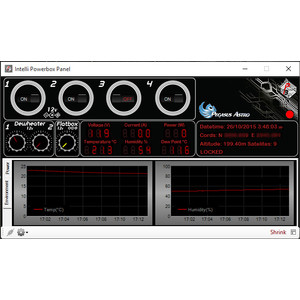 - External Environment Sensor: External temperature & relative humidity sensor is included in the package. Know exactly the environment conditions of your location. The sensor can automaticaly handle the dew heater outlets to adjust the power. Leave to Intelli Powerbox to decide if it is time to turn on your dew heaters! Moreover, you can view the readings of temperature, humidity and dew point in the supplied software. Graphs for temperature and humidity are also available.