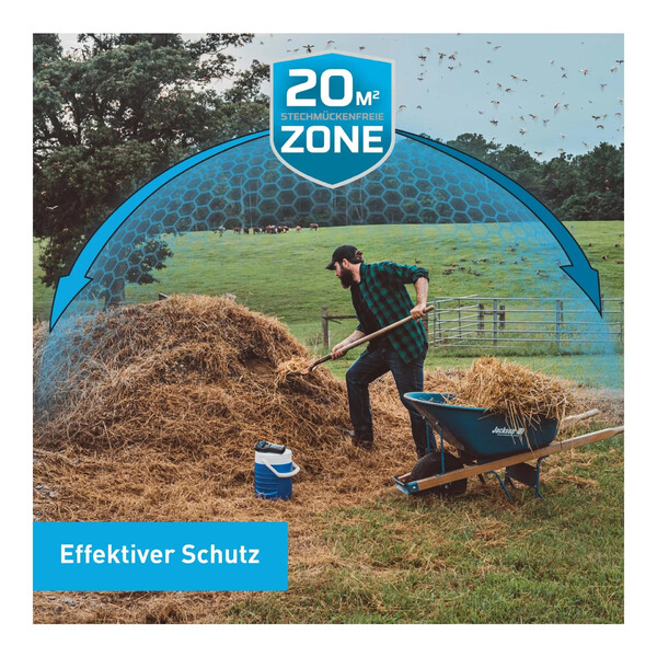 El dispositivo es ideal para la pesca, la caza, el camping y el caravaning, así como para su uso en el jardín. El clip incluido permite fijarlo fácilmente al cinturón o al equipo. El volumen de suministro incluye un kit de material fungible inicial (cartucho de gas butano y 3 pastillas de sustancia activa) para 12 horas de uso.