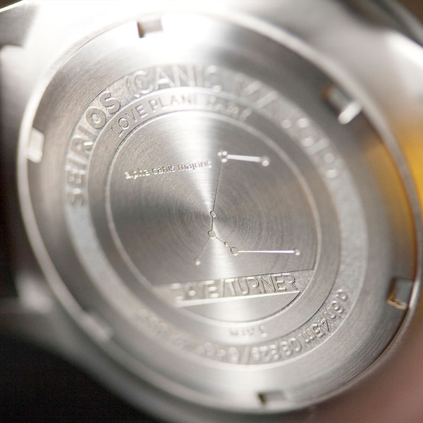 Este reloj de pulsera está dedicado a la estrella Seirios (en latín, Sirius) de la constelación Canis Major, tal y como se documenta en el fondo de la caja del reloj. Este sistema estelar doble es el objeto estelar más brillante del cielo nocturno.