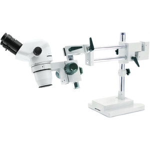 El SZN-9 no dispone de iluminación ni platina del microscopio y está equipado con una base de suspensión sencilla de 42 cm de altura, con un brazo de 55 cm de longitud y una base de 26 x 21 cm.