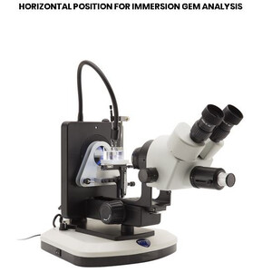 Especially OPTIGEM Series offers the ideal configuration, with multiple options for illumination and contrast techniques, such as incident, transmitted and oblique brightfield / darkfield, polarization and immersion analysis. They come with a special optical condenser configuration to ensure real, perfect darkfield application. OPTIGEM-1 & OPTIGEM-2 are two-in-one gemology instruments that can be used both in vertical and horizontal position in a very easy way, just by turning one knob: the horizontal position extends the use of a gemological microscope, giving the possibility to perform immersion analysis by submerging a sample in liquid.
