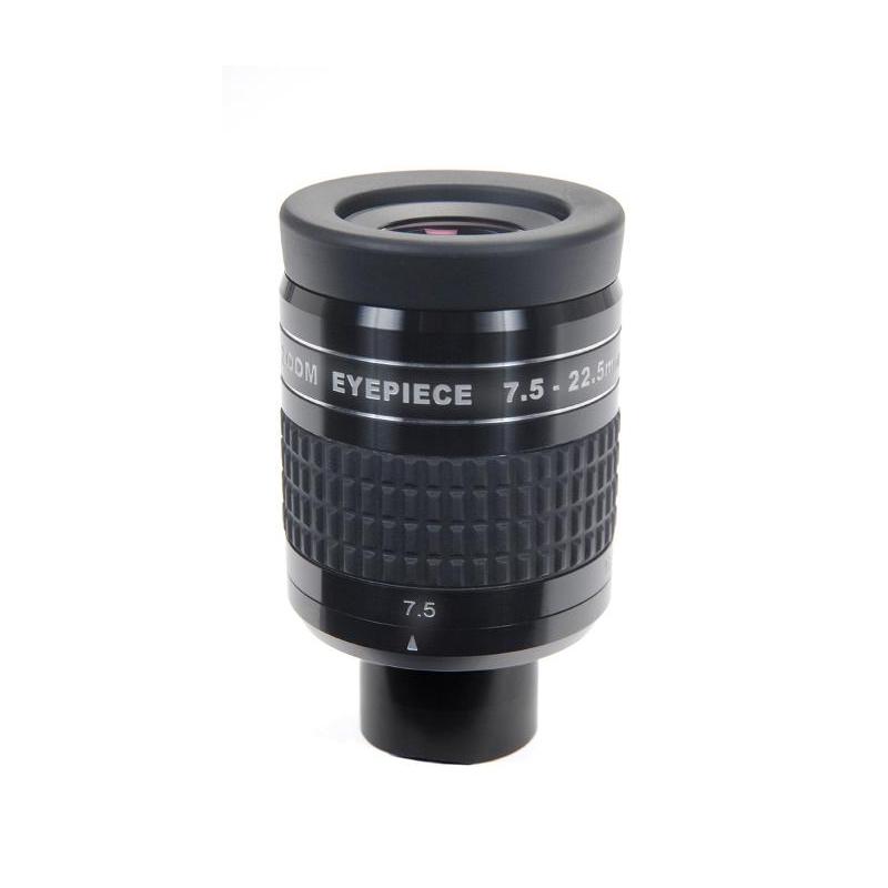 A high-performance zoom eyepiece of top quality construction, providing an extra flat field of view and crisp, clear distortion-free images. Features a continuous focal length of 7.5mm to 22.5mm and a corresponding wide apparent field of view of 66°-42°. For convenience, focal length positions of 7.5, 12, 17 & 22.5mm are engraved on the eyepiece barrel. The zoom is super-smooth to operate and a pleasure to use. The generous eye relief varies from 18mm-19.5mm.