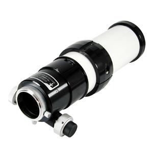 Este completo telescopio solar es un acromático de gran calidad. Su lente frontal reduce la cantidad de luz residual a la mitad (en comparación con acromáticos normales). También elimina el posible coma, astigmatismo, distorsiones en el centrado para crear, junto con las lentes colimadoras necesarias, un telescopio solar flat-field esféricamente corregido. La imagen se aprecia con una resolución extremadamente alta en la zona roja del espectro. El sistema óptico está libre de sombreado (libre de sombreado central) y es ideal para observar la superficie solar y sus protuberancias. El tubo es metalizado y de color blanco.