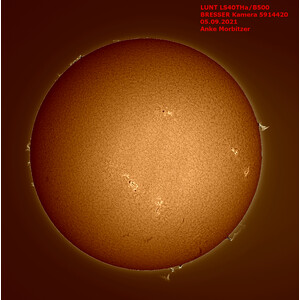 El filtro de bloqueo B1200 es estupendo para la observación visual del Sol. También se puede fotografiar nuestra estrella con cámaras que tengan un chip sensor pequeño, es decir, con cámaras planetarias típicas. Para cámaras con sensores medianos o grandes, debe utilizarse un telescopio con un filtro de bloqueo más grande para que el sensor quede iluminado.