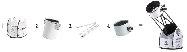 En el caso de los telescopios Dobson, además del peso, el mayor conveniente es la posibilidad de desmontar el instrumento en piezas más pequeñas. Solo así se puede transportar un Dobson de grandes dimensiones para poder observar el cielo estrellado. En los tubos Truss el punto de gravedad se desplaza hacia el espejo principal. Por eso, en los telescopios Dobson la caja de la montura es más baja, lo cual facilita notablemente el transporte.