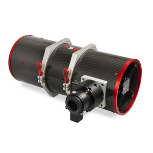 - La construcción de los tubos de fibra de carbono proporciona una gran rigidez con un peso reducido y una dilatación térmica extremadamente baja. Esto significa que la posición de enfoque permanece estable durante largas exposiciones. Los tubos están forrados de terciopelo para evitar la luz parásita. En la parte posterior se ha instalado un ventilador para acelerar la aclimatación a la temperatura antes de su uso.