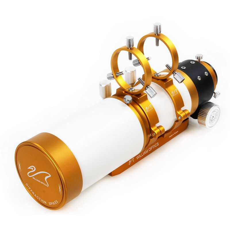 - Pura calidad William Optics en ajuste y acabado: aluminio fresado CNC con recubrimiento de polvo, acabado coloreado, parasol contra rocío retráctil