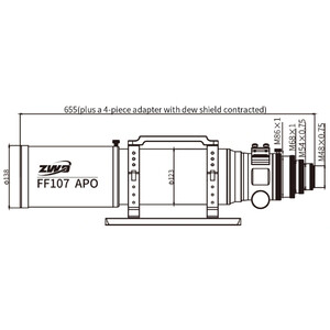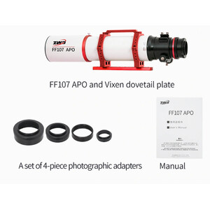 El ZWO FF107 APO es un apocromático cuádruple diseñado específicamente para satisfacer las altas exigencias de la astrofotografía, pero también es ideal para la observación visual. Su estructura óptica consta de cuatro elementos de lente, entre ellos dos cristales ED con una dispersión especialmente baja. Esta combinación garantiza una excelente corrección del color, estrellas nítidas hasta el borde del círculo de imagen de 44 milímetros y un campo de imagen completamente plano, sin necesidad de un aplanador adicional.