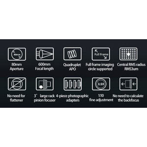 Telescopios > ZWO > ZWO Refractor apocromático AP 80/600 FF80