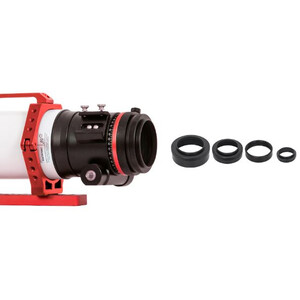 Con el aplanador integrado, el FF80 ofrece grandes ventajas para la astrofotografía: ilumina sensores de formato completo y garantiza una imagen nítida con estrellas puntuales en el eje. El apocromático se suministra con un parasol contra rocío extraíble, un enfocador de 3" con rotación de 360°, zapata para visor Vixen/GP y cuatro adaptadores para cámaras diferentes (M76, M68, M54 y M48). El tubo pesa 3,9 kg, con las abrazaderas y el raíl el peso es de 4,7 kg.